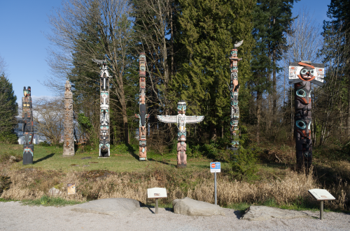 バンクーバーの貴重な文化遺産の一つは、先住民族が残したトーテムポールの作品群です。スタンレー公園にも、9つのトーテムポールが展示されています。